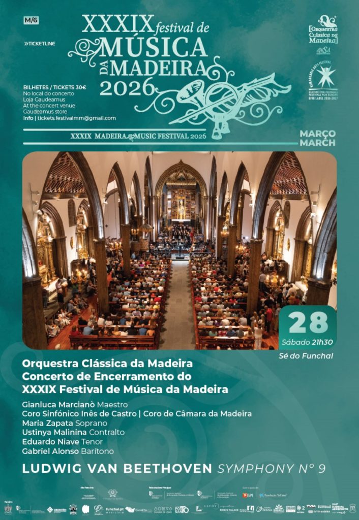 The concert takes place at Funchal Cathedral on Saturday, 28 March, at 9:30 pm, promising an evening of great solemnity and emotion, where the universal power of Beethoven’s music unfolds as a collective celebration and the triumphant culmination of the festival.
