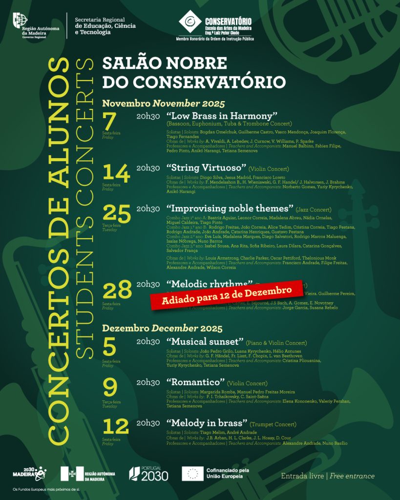 Este ciclo conta com uma série de atuações protagonizadas pelos alunos dos Cursos Profissionais de Instrumentista, Instrumentista de Jazz e do Ensino Artístico Especializado, refletindo o talento e o empenho dos jovens músicos da instituição.