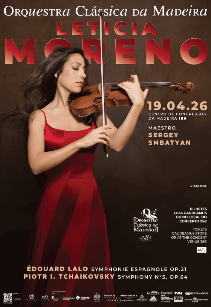 A Orquestra Clássica da Madeira apresenta, no dia 19 de abril, às 18h00, no Centro de Congressos da Madeira, um concerto de elevada intensidade artística. O evento contará com a participação de duas figuras de destaque no panorama internacional: a violinista Leticia Moreno e o maestro Sergey Smbatyan.