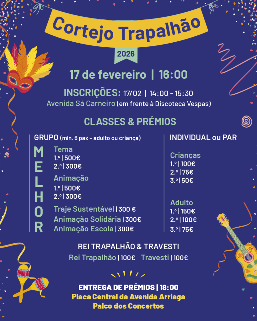 A participação é aberta a todos, nacionais e estrangeiros, podendo fazer-se individualmente ou em grupo, nas diferentes categorias das quatro classes que compõe a classificação – Classe de Adultos, Classe de Crianças, Classe de Melhor Trapalhão, Classe Rei Trapalhão e Travesti.