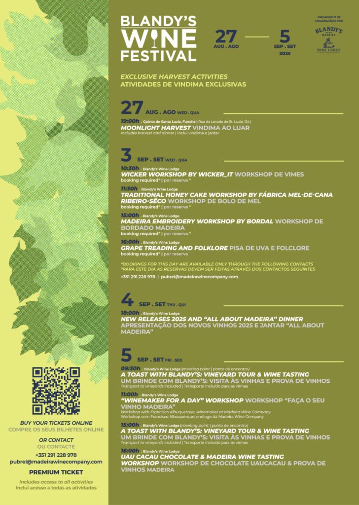 No contexto das celebrações da Festa do Vinho na Madeira, a empresa Blandy promove um conjunto de ações recreativas, oferecendo aos turistas e ao público geral a oportunidade de experienciar uma panóplia de atividades, tais como a pisa da uva, uma visita às vinhas da família Blandy, a degustação de algumas iguarias da doçaria regional, uma prova de vinhos, entre outras.
